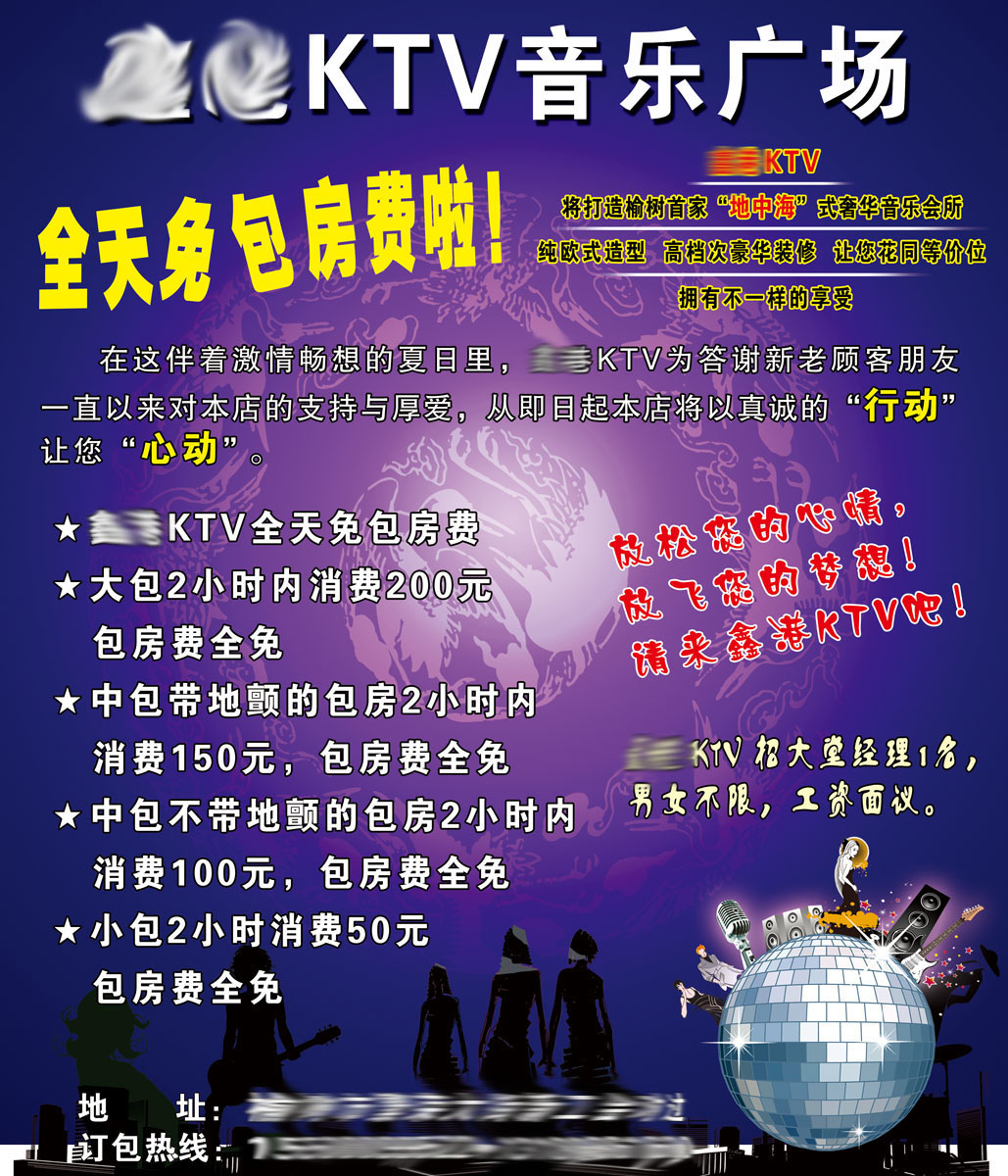 5、最低消费:不设最低消费和人头费
