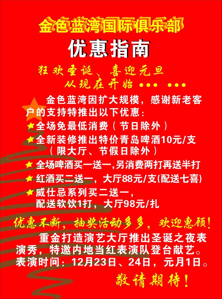 a、快乐圣诞,xx酒吧!圣诞特惠活动已经拉开序幕!