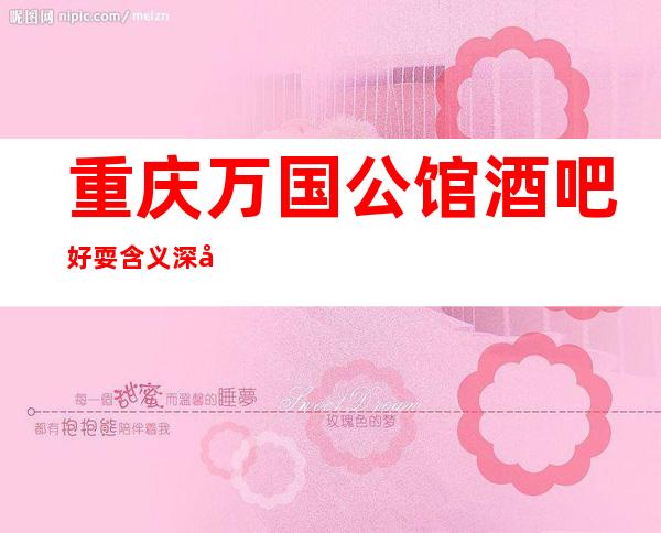 重庆万国公馆酒吧好耍含义深刻的重庆十大酒吧明明能够过得这关赢回旁人盛赞